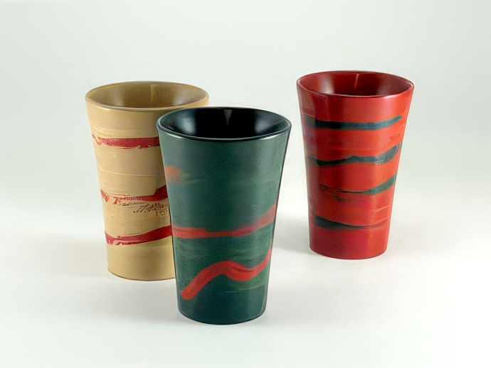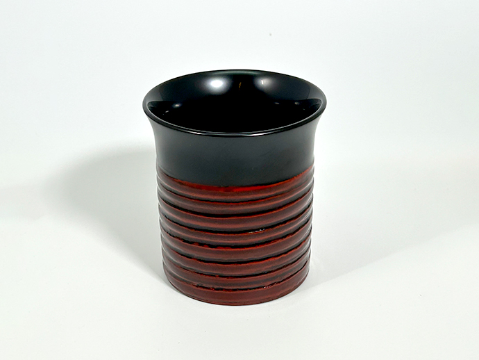 塩安漆器工房の小さなブースに端反り(はぞり)のカップ 百筋 などが並びます。