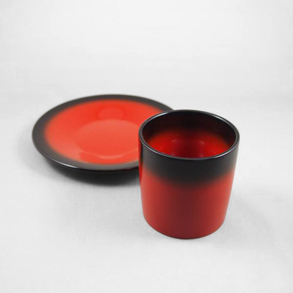 ご購入はこちら黒朱のグラデーションで仕上げたカップ&ソーサー。