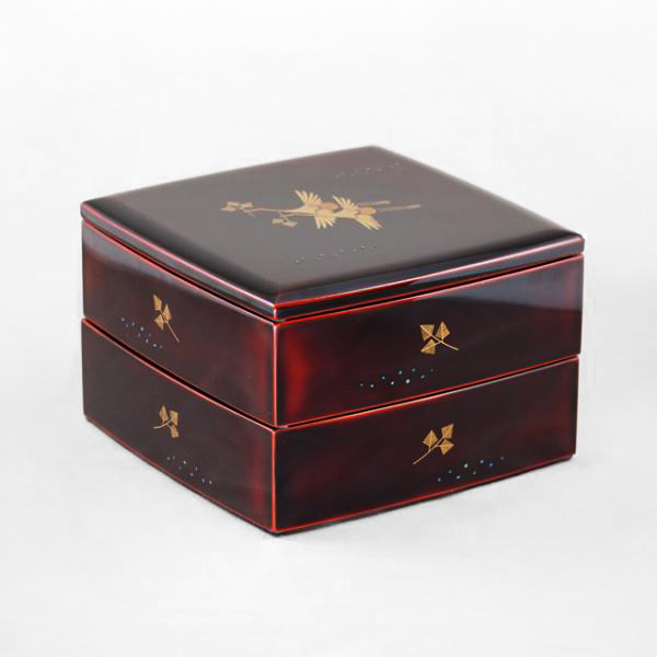 輪島塗 二段重 溜呂色 「松喰鶴」蒔絵