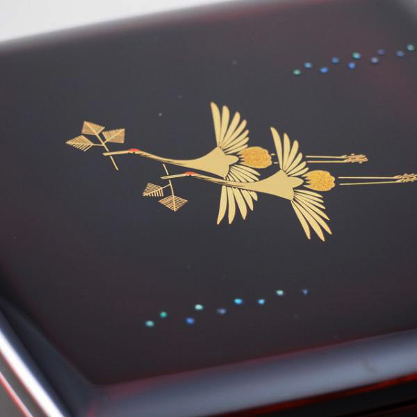 蒔絵は大端 稔 作の「松喰鶴」。