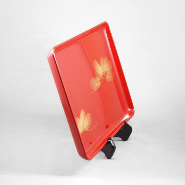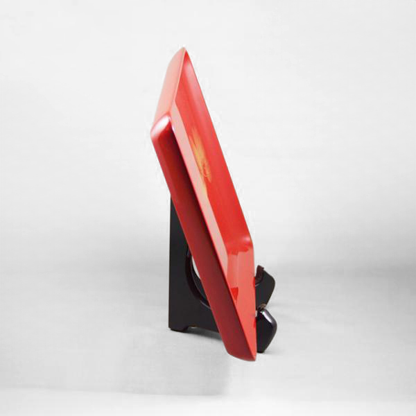 鮮やかな朱に呂色をかけて仕上げた長手盆です。