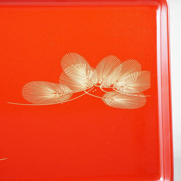 輪島塗 長手盆 朱呂色 風の松沈金
