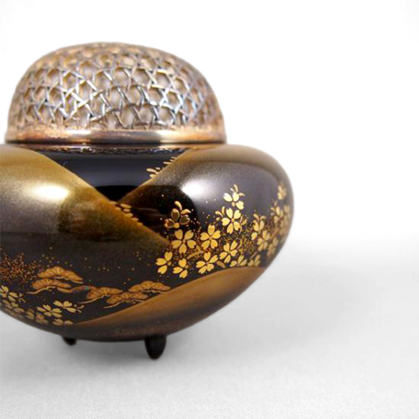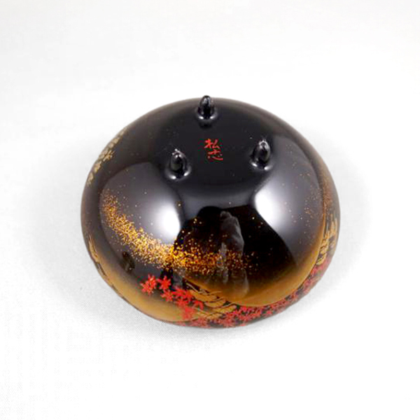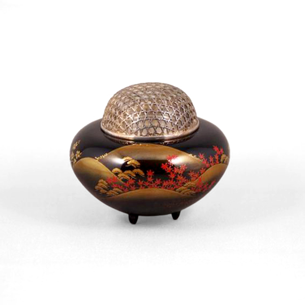 輪島塗香炉 三ッ足(小)黒呂色「遠山に春秋」蒔絵
