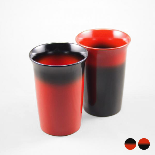輪島塗ぐいのみ 筒型 ぼかし塗[朱×黒]