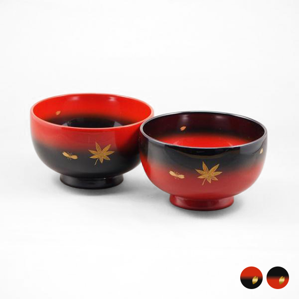 輪島塗深型汁椀 3寸6分 ぼかし塗[黒×朱] 春秋蒔絵